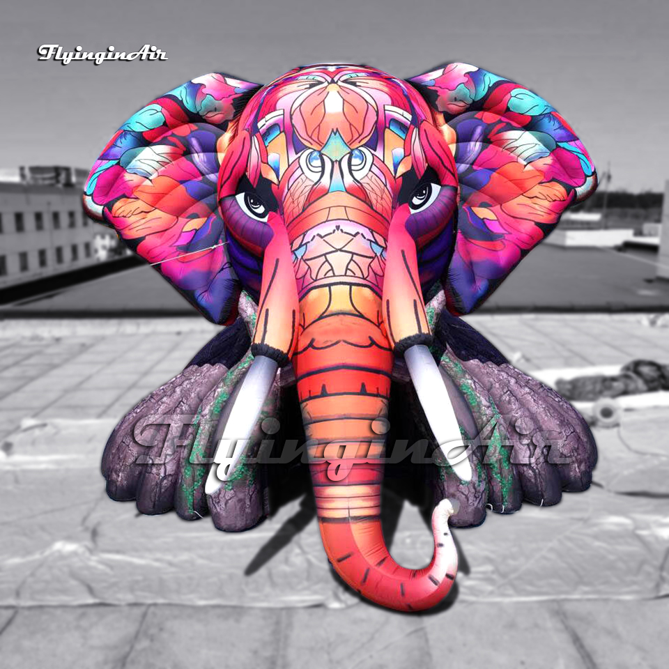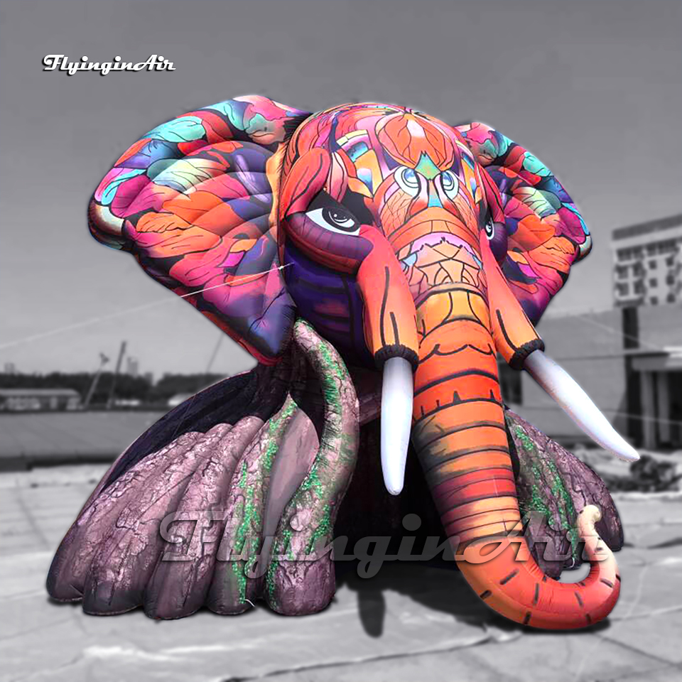 Túnel escénico de cabeza de elefante inflable gigante colorido1Túnel de Elefante Inflable Gigante para Fondo de Escenario (5m/6m Altura) – Decoración para Fiestas al Aire Libre